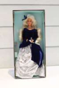 Greetings from Holiday Memories® Barbie® doll! Together, Barbie® and Hallmark have teamed up to bring you this very special doll commemorating the 85th anniversary of Hallmark Cards. Barbie® is dressed in a lovely white flared jacket and skirt with a red skirt underneath. Her jacket is trimmed in brown faux fur at the collar and cuffs, and the ensemble is accented with a red and white hat and brown knee-high boots.