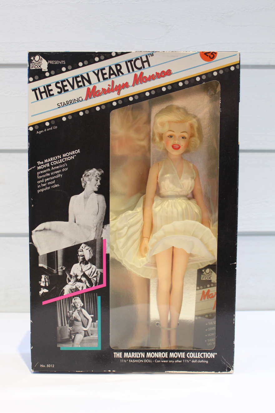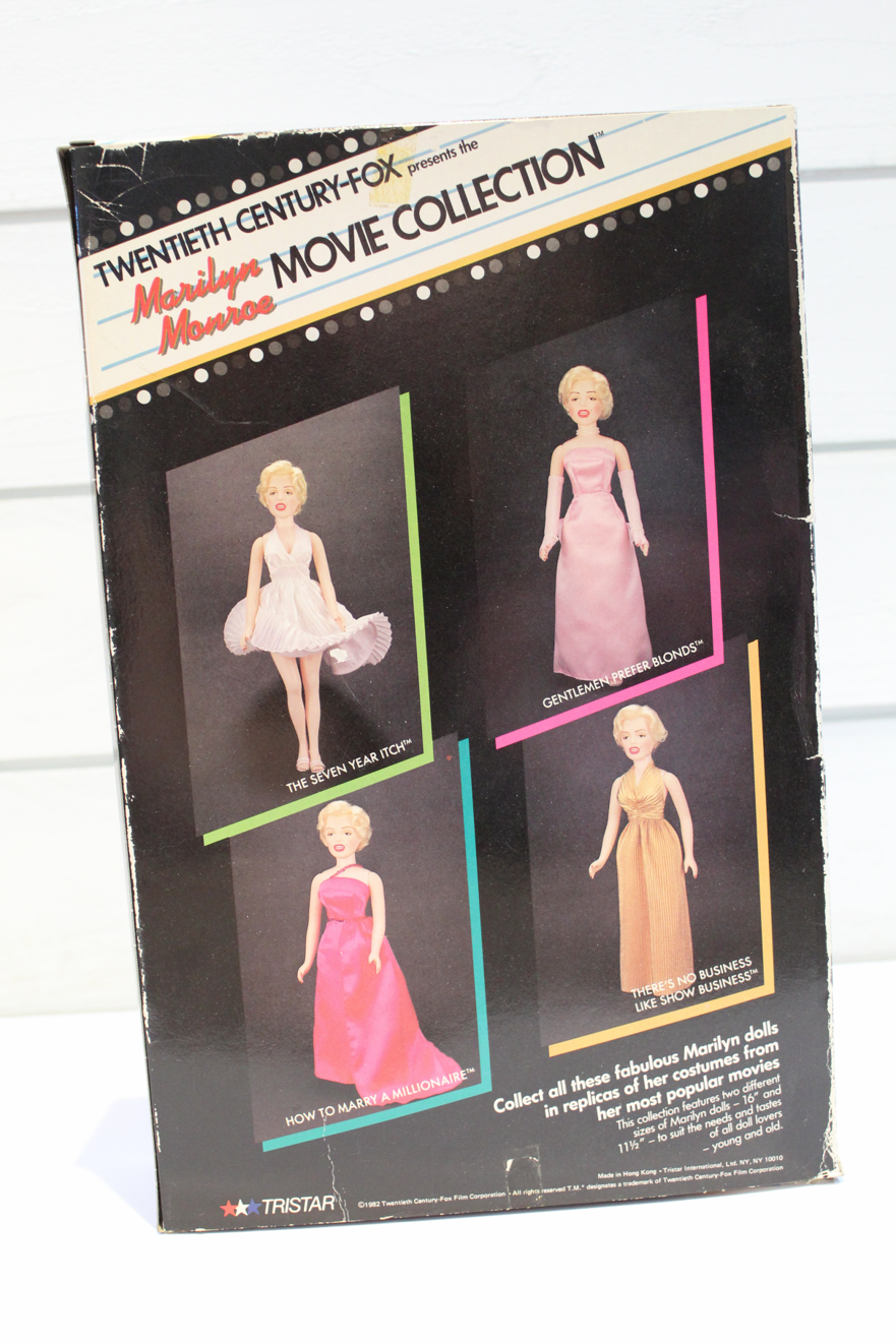 This vintage Marilyn Monroe doll is a must-have for any movie memorabilia collector. Made in China in 1982, it features the iconic white dress scene from The Seven Year Itch from 20th Century Fox. The doll is new in its original packaging and perfect for display or play. Box does show wear consistent with age. The doll is part of the entertainment memorabilia category and falls under the subcategory of movie memorabilia, specifically merchandise and promotional items like figures and dolls. It is an original piece and a great addition to any collection. Don’t miss out on the chance to own a piece of Hollywood history with this Marilyn Monroe doll.